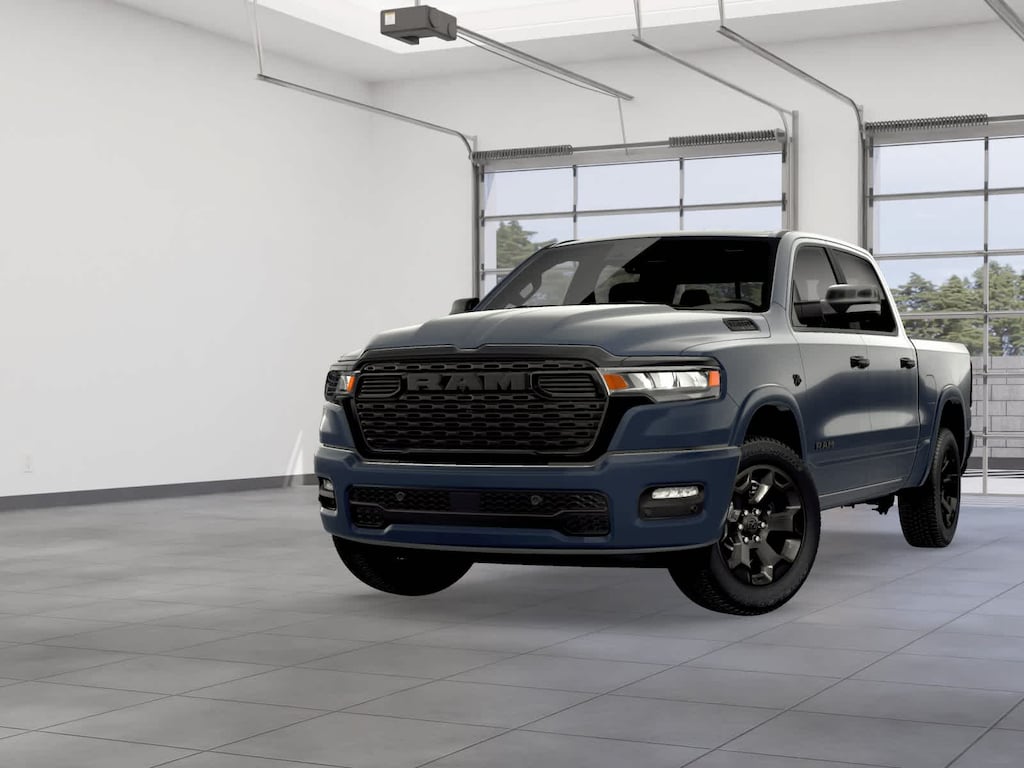 With mild-hybrid HEMI strength, our 2026 RAM 1500 Big Horn Crew Cab 4X4 Night Edition in Forged Blue Metallic features the Level 2 Equipment Package. Powered by a 5.7 Liter HEMI eTorque V8 with a 48V Mild-Hybrid system providing 395hp to an 8 Speed Automatic transmission for smart capability plus impressive towing. This Four Wheel Drive truck features responsive handling at work or play, and it achieves nearly 22mpg on the highway, thanks to its rugged design. Our RAM 1500 stands strong and looks great with bright bumpers, chrome grille accents, and alloy wheels.